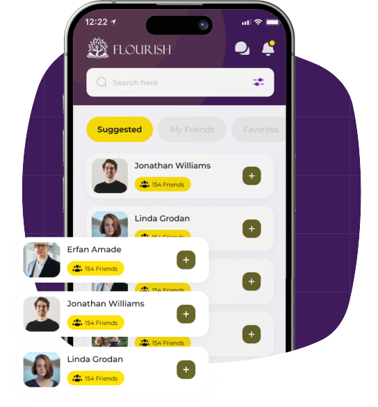 Flourish at Iliff offers a personalized networking feature where users can connect with peers, experts, and community leaders. The “Suggested” section highlights potential connections tailored to your interests and leadership goals, helping you build meaningful relationships. You can easily add friends, collaborate, and grow within a supportive learning community. Whether you’re looking to exchange ideas, participate in group discussions, or build a support network, Flourish ensures you are never learning or leading alone.